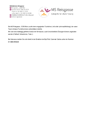 Sollte diese Rubrik zur Zeit leer sein, so sind seitens der Sportdach- und Sportfachverbände oder anderer Institutionen die Sportanleiter und Sportanleiterinnen suchen (Schulen,... ) keine Anfragen eingegangen.