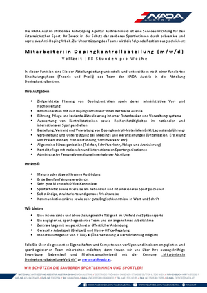 MitarbeiterIn Dopingkontrolle-Abteilung "vollzeit"