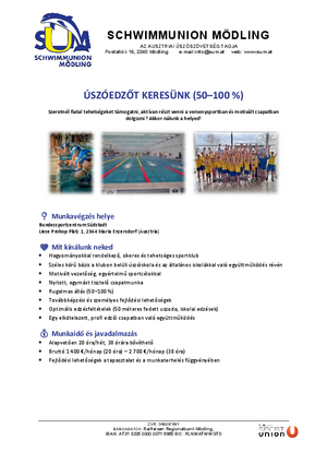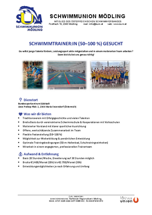 Graz: Schwimmunion Mödling sucht Schwimmtrainer:in.
