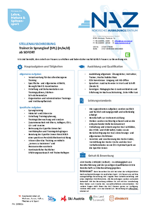 Das Nordische Ausbildungszentrum Eisenerz ist aktuell auf der Suche nach einer engagierten Persönlichkeit für die Position Trainer:in Sprunglauf.