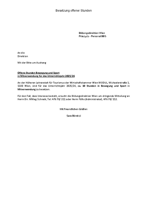 Wien: Ausschreibung Sportlehrerin