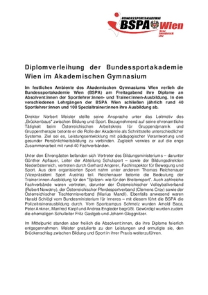 Im festlichen Ambiente des Akademischen Gymnasiums Wien verlieh die Bundessportakademie Wien (BSPA) am 20.02.2026 ihre Diplome an Absolvent:innen der...
