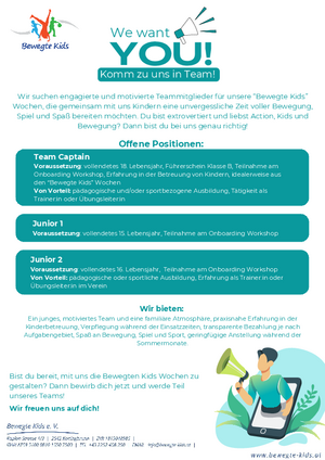 Sollte diese Rubrik zur Zeit leer sein, so sind seitens der Sportdach- und Sportfachverbände oder anderer Institutionen die Sportanleiter und Sportanleiterinnen suchen (Schulen,... ) keine Anfragen eingegangen.